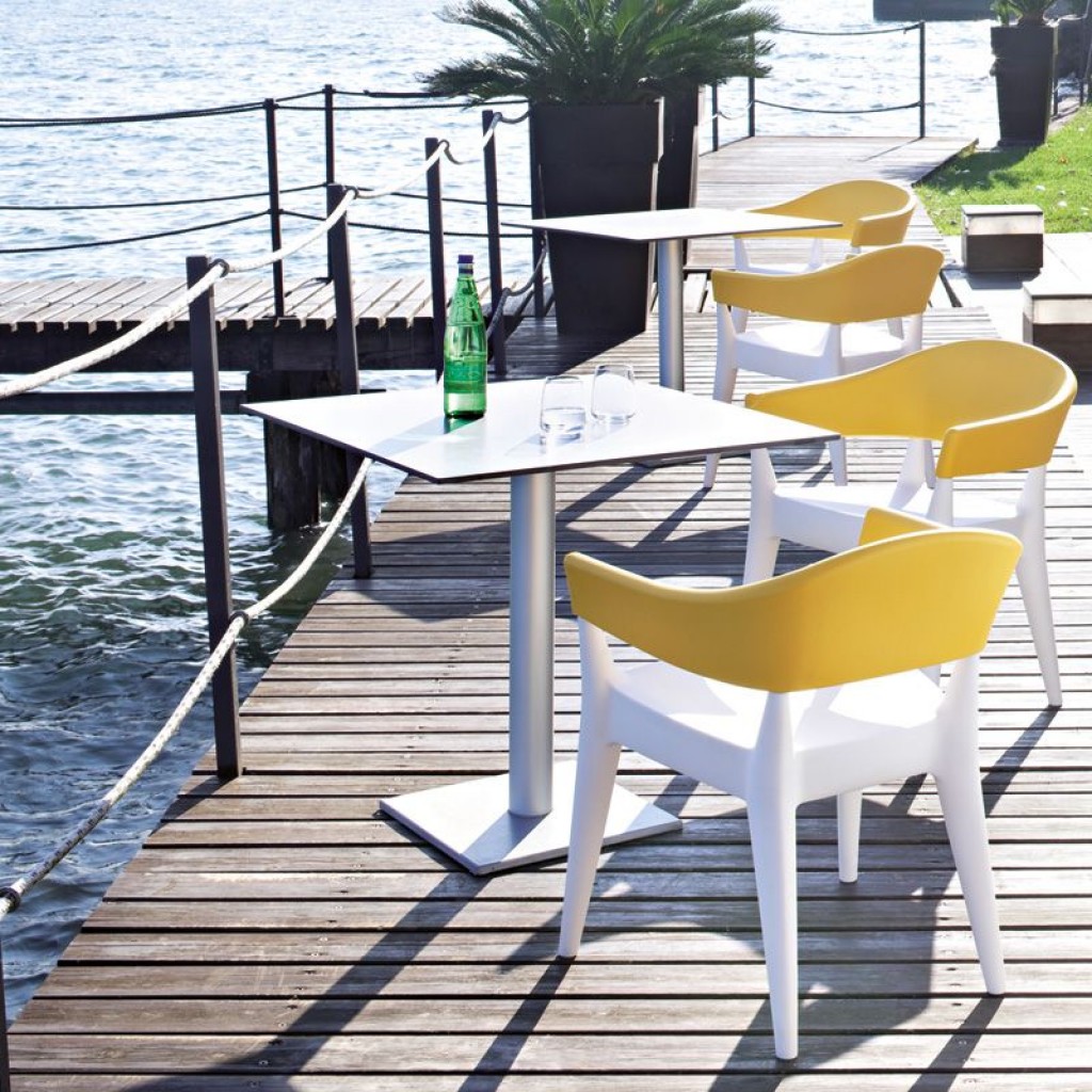 Set-Up este o masa cu baza din beton (demontabila si stivuibila) sau fonta, cu suprafata din poilietilena rezistenta la razele UV, disponibila cu inaltimea de 730 mm si 1100 mm.Designer Stef.. -