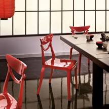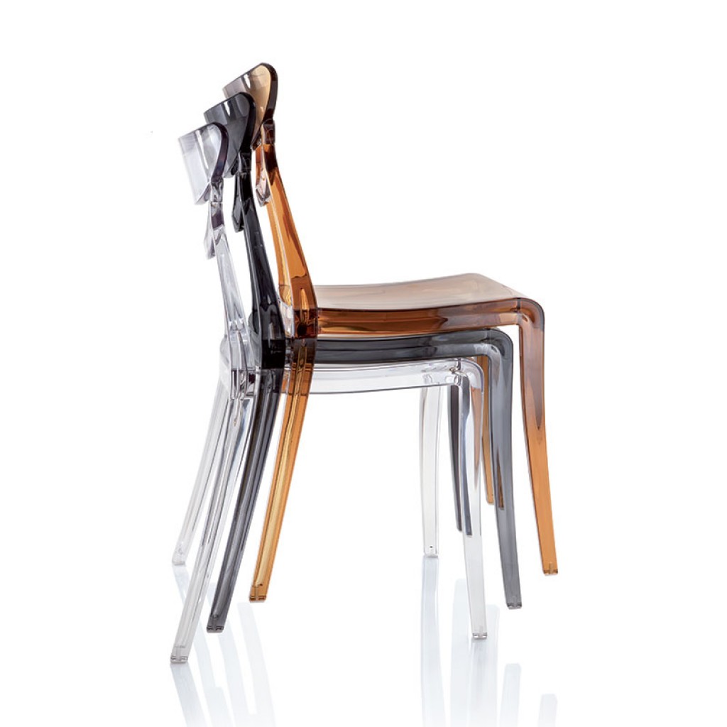 Marlene este un scaun elegant, din policarbonat sau nylon in culori stralucitoare, compacte, ce poate fi folosit atat acasa cat si in domeniul HORECA.