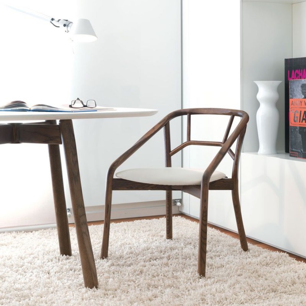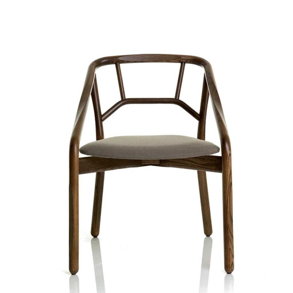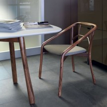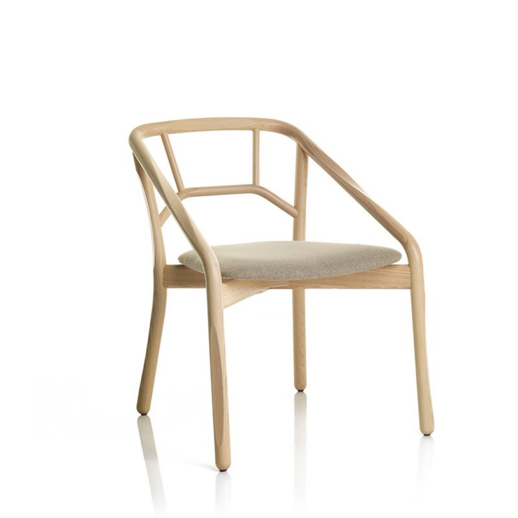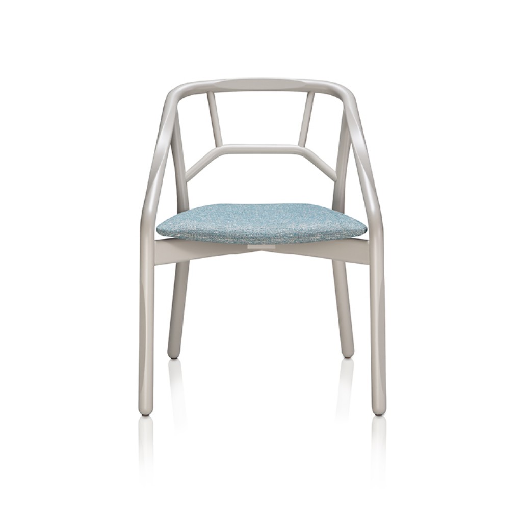 Lips este un scaun de tip fotoliu, cu picioarele din lemn sau otel pictat. Cochilia din lemn a sezutului poate fi complet captusita. In partea din spate a cochiliei, nuantele de lemn cenusiu.. -