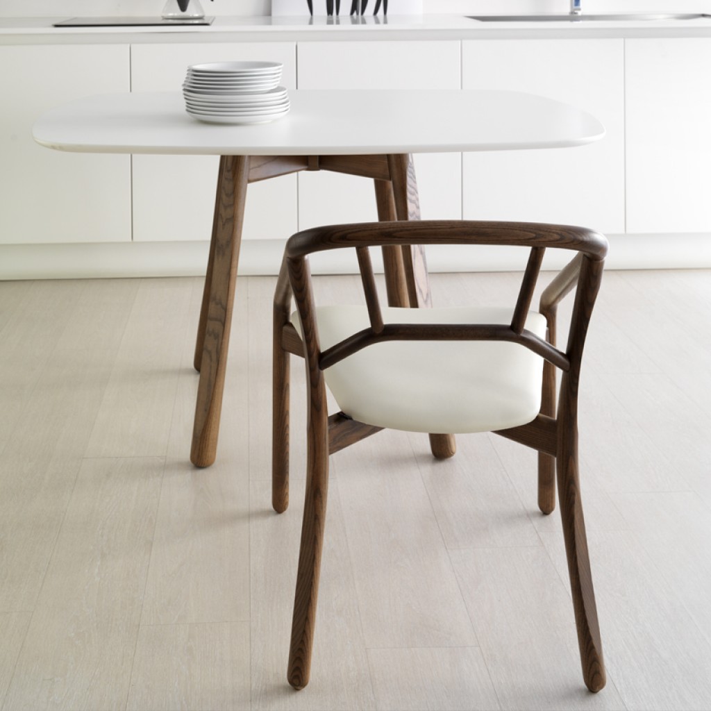 Marnie este un scaun din sectiune rotunda de lemn, colorat sau lacuit, cu un design special al lemnului in zona picioarelor, cotierelor sau spatarului. Disponibil atat in varianta cu spatar si sezut tapitat, sau doar in varianta cu sezut tapitat si spatar clasic din lemn.