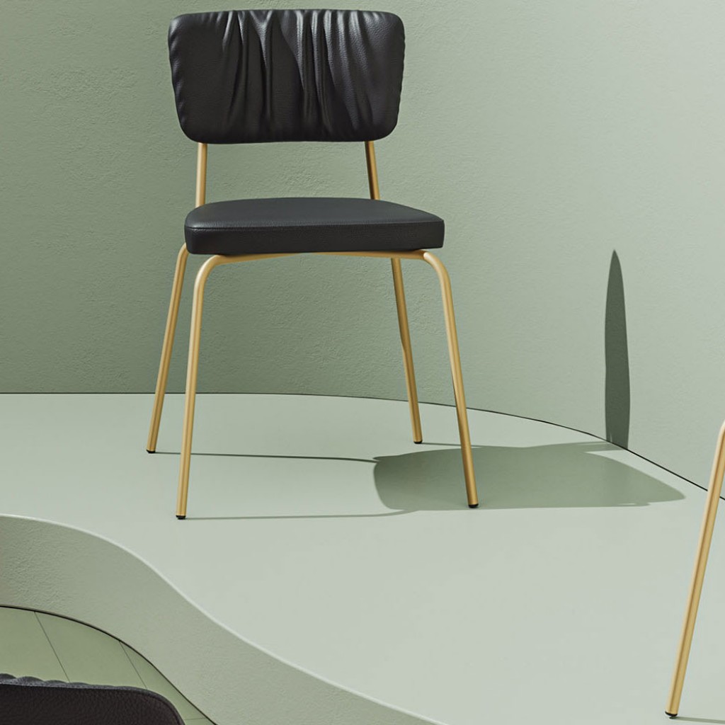 Design unic si alternativ. Scaunele au un spatar metalic din otel tubular, cu forma curbata ce creeaza un efect fermecator tapiteriei de calitate pentru sezut si spatar.Design: Silvano Guion.. -