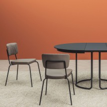 Verve este o colectie de inspiratie retro, cu o turnura contemporana. Dispune de un cadru metalic la moda si elegant, scaun captusit, spatar si cotiere realizate din placaj acoperit cu spuma.. -
