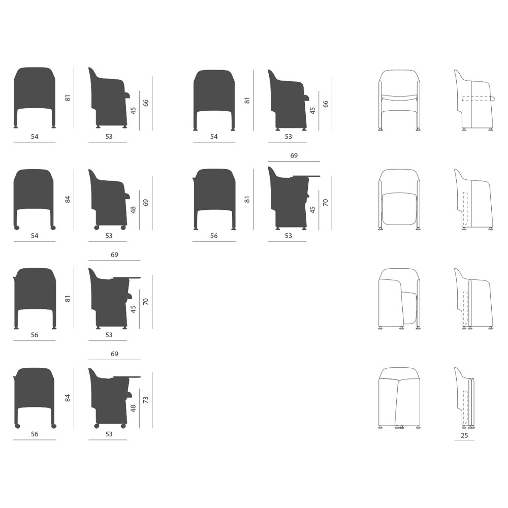 Placerea asteptarii. Familie de piese tapitate – fotoliu si canapele cu doua si trei locuri – destinate spatiilor de asteptare, relaxare sau intalnire.Dimensiuni..