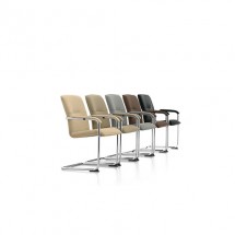 Scaun pentru salile de asteptare sau meeting, cu cadru din otel si captuseala din tesatura sau piele.