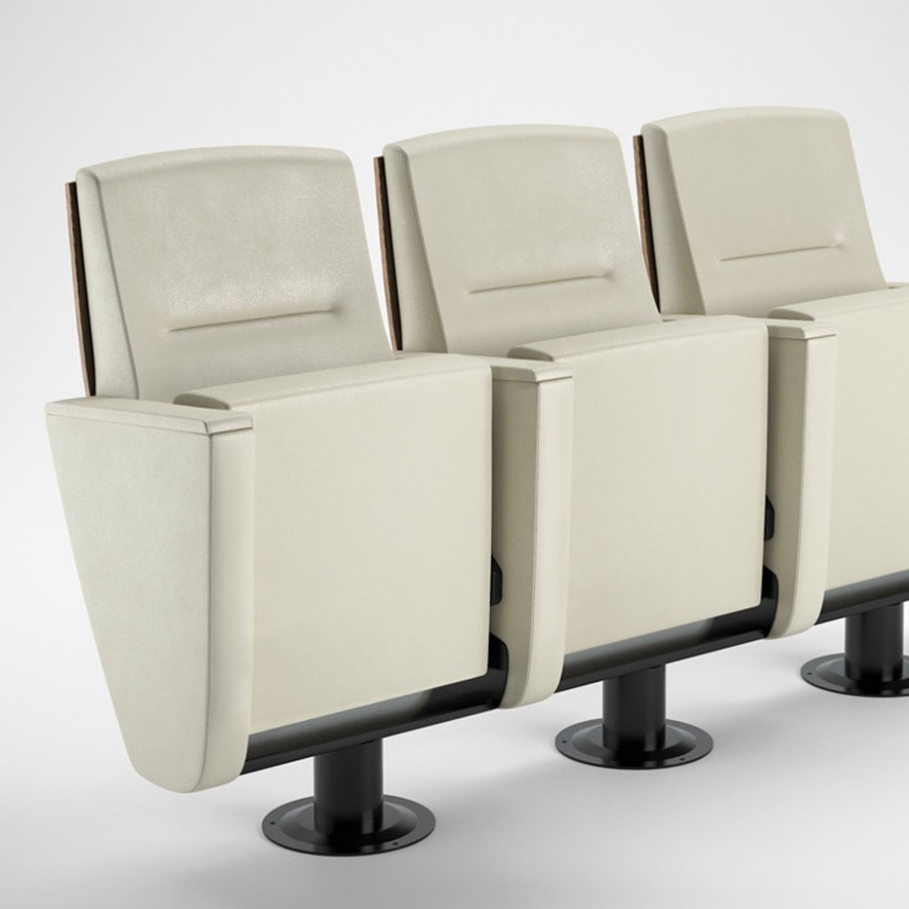 Confort si functionalitateUn scaun pentru sali de cinema, cu linii esentiale si cotiere cu forma unica, ce amintesc de litera "Y", ce are proprietatea speciala de a fi robust. Eleganta si co.. -
