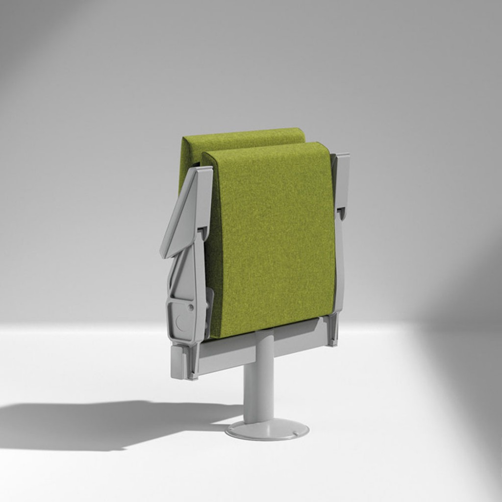 Oro este un fotoliu compact, rational, pe un picior central. Sistemul individual de fixare pe podea si cotiera integrata il fac ideal pentru instalarea in curbe inguste. Versiunea pliabila e..