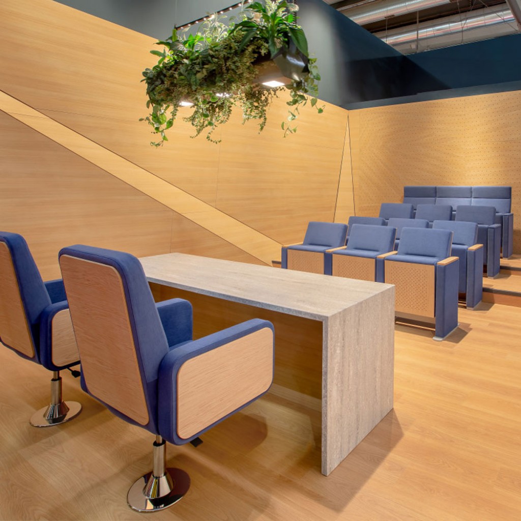 Omnia este un sistem de scaune multi-functional cu tablie de scris pentru salile de lectura. Este unic datorita formei ergonomice si robuste. Pentru Omnia, sistemul anti-soc binevenit in sal.. -