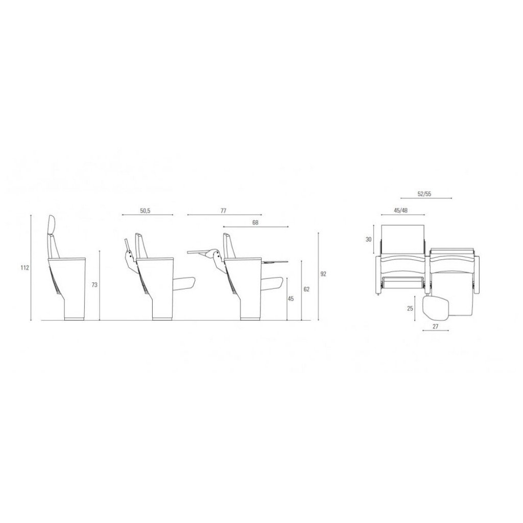 Confort si functionalitateUn scaun pentru sali de cinema, cu linii esentiale si cotiere cu forma unica, ce amintesc de litera "Y", ce are proprietatea speciala de a fi robust. Eleganta si co.. -