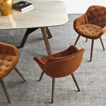 Modelul Igloo Soft este unul iconic pentru cei de la Calligaris. Se remarca printr-o cochilie spatioasa si tapiterie matlasata in doua materiale: piele vintage faux si catifea de Venetia. Acest fotoliu/scaun pentru dinning este pentru cei care iubesc liniile retro dar cu indicii ale inovatiei.
