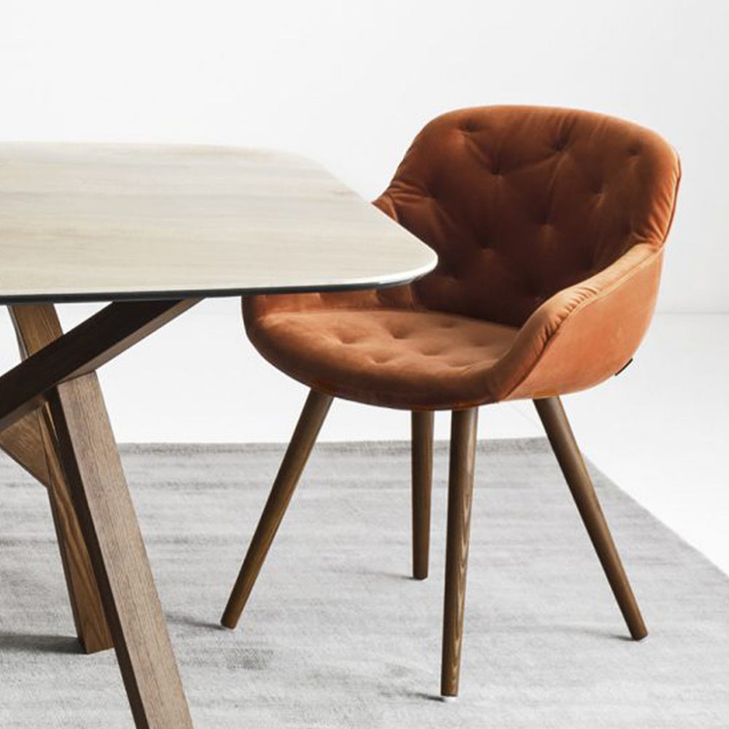 Cu curbe sinuoase si materiale fine, acest scaun este o fuziune eleganta intre design retro si confort modern. Sustinut de picioare din lemn, scaunul Wolly se remarca prin nota sa distinctiv.. -