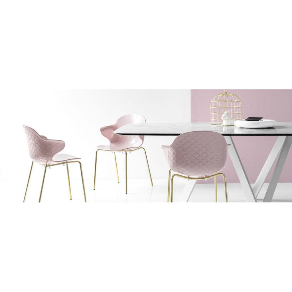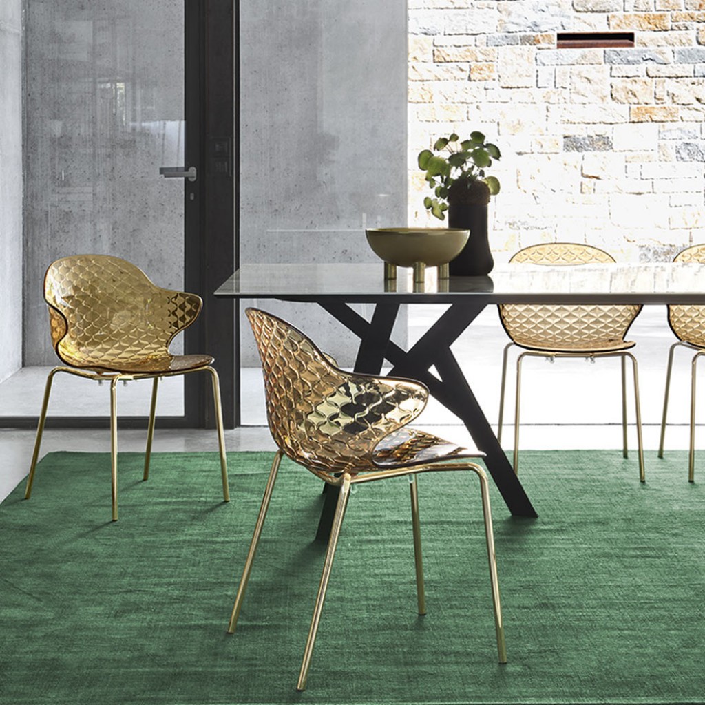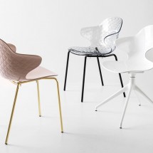 Saint Tropez este un scaun cu un design exclusivist. Scaunul are o cochilie din policarbonat fin, din technopolymers, transparent sau lucios si reinterpreteaza efectul tipic al materialului matlasat. Este un model ergonomic, cu linii moi si cotiere usoare si faimos pentru versatilitatea sa.