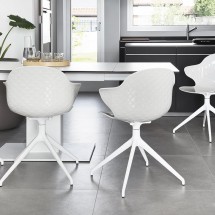 Un scaun elegant si versatil, cu spatar si sezut tapitate intr-o gama larga de finisaje, conceput pentru a oferi confort si stil in fiecare detaliu. Baza pivotanta, realizata din metal vopsi.. -