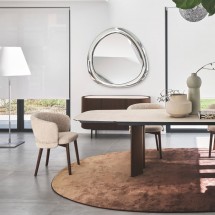 Cu o estetica eleganta, masa Apian adopta o abordare de design arhitectural si a fost realizata cu meticulozitate din materiale rafinate. Look-ul aerisit aminteste de o tabla de metal curbat.. -