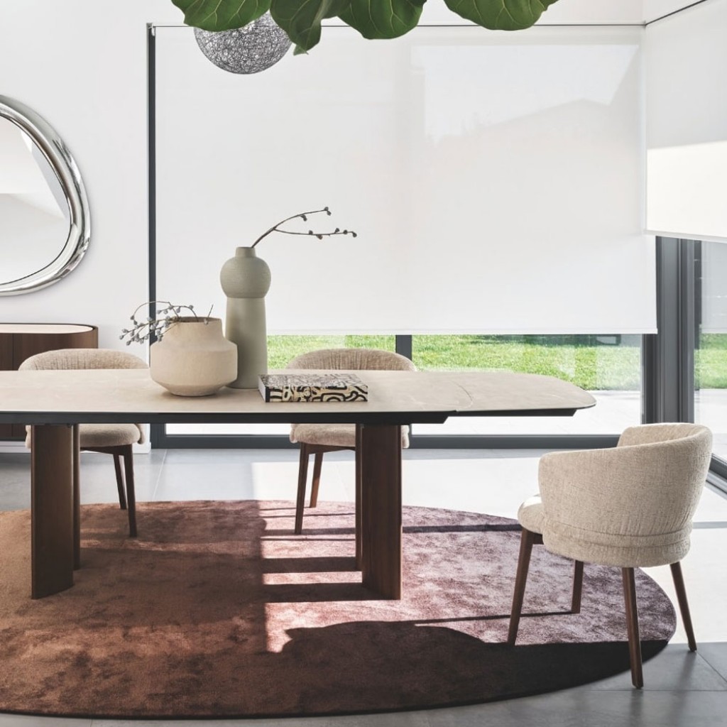 Abrey face parte dintr-o colectie de mese, cu strutura si picioare din lemn solid de frasin si blaturi evidentiate prin eleganta si rezistenta materialelorDesign by BurattiDimensiuni standar.. -