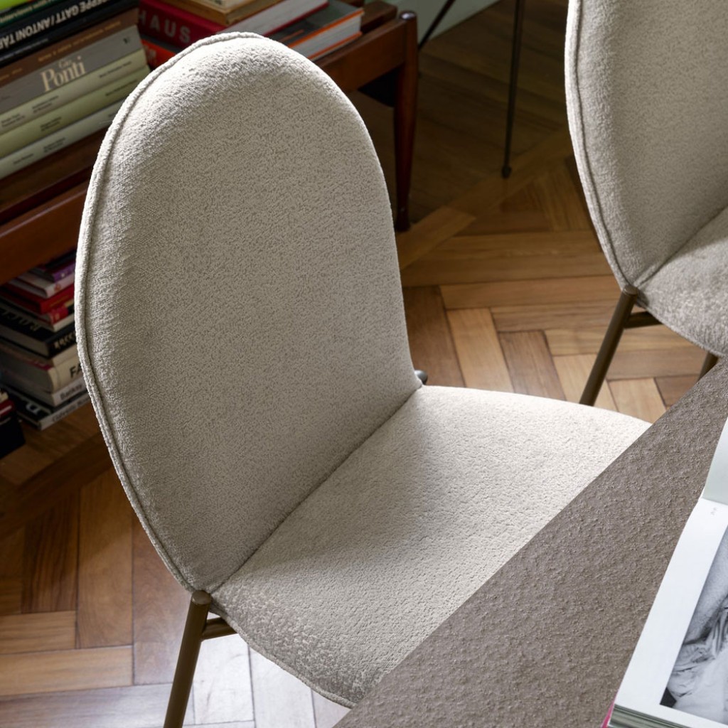 Scaunul Riley Mid are un spatar jos si largit, cu o forma rotunjita, iar picioarele sale sunt din metal. Aceasta combinatie de elemente ofera un scaun cu un design contemporan, ideal pentru crearea unui spatiu primitor.
