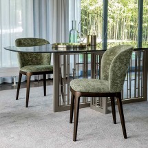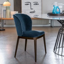Fifties este un scaun ce reaminteste de stilul anilor '50, reinterpretat intr-o cheie moderna. Cadrul metalic din alama sau din metal negru se potriveste cu catifeaua de Venetia, pielea groa..