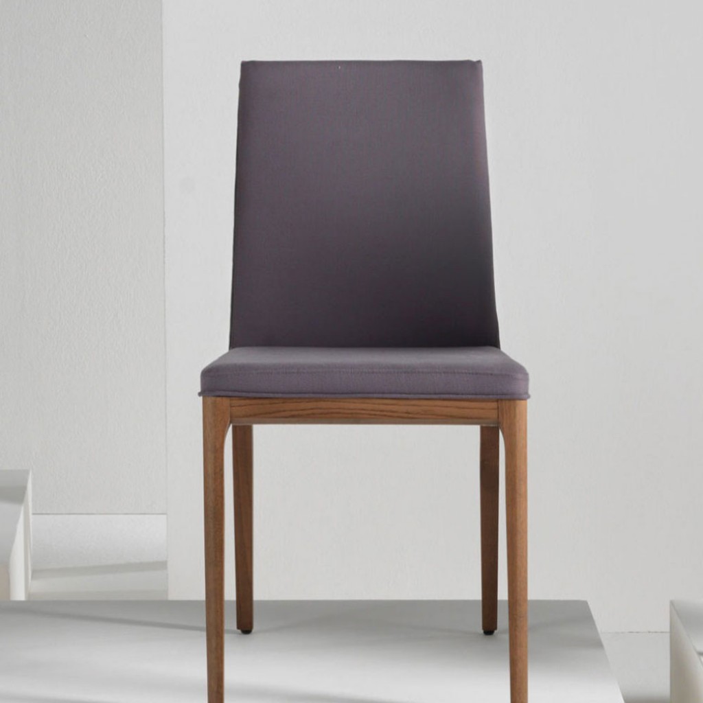 Scaunul pentru dining Angy are baza angulara mare si joasa, un scaun tapitat cu forma ergonomica si a carui husa nu poate fi detasata. Picioarele sunt realizate din lemn.