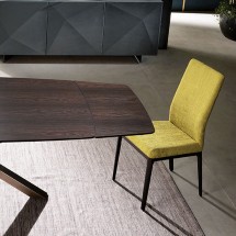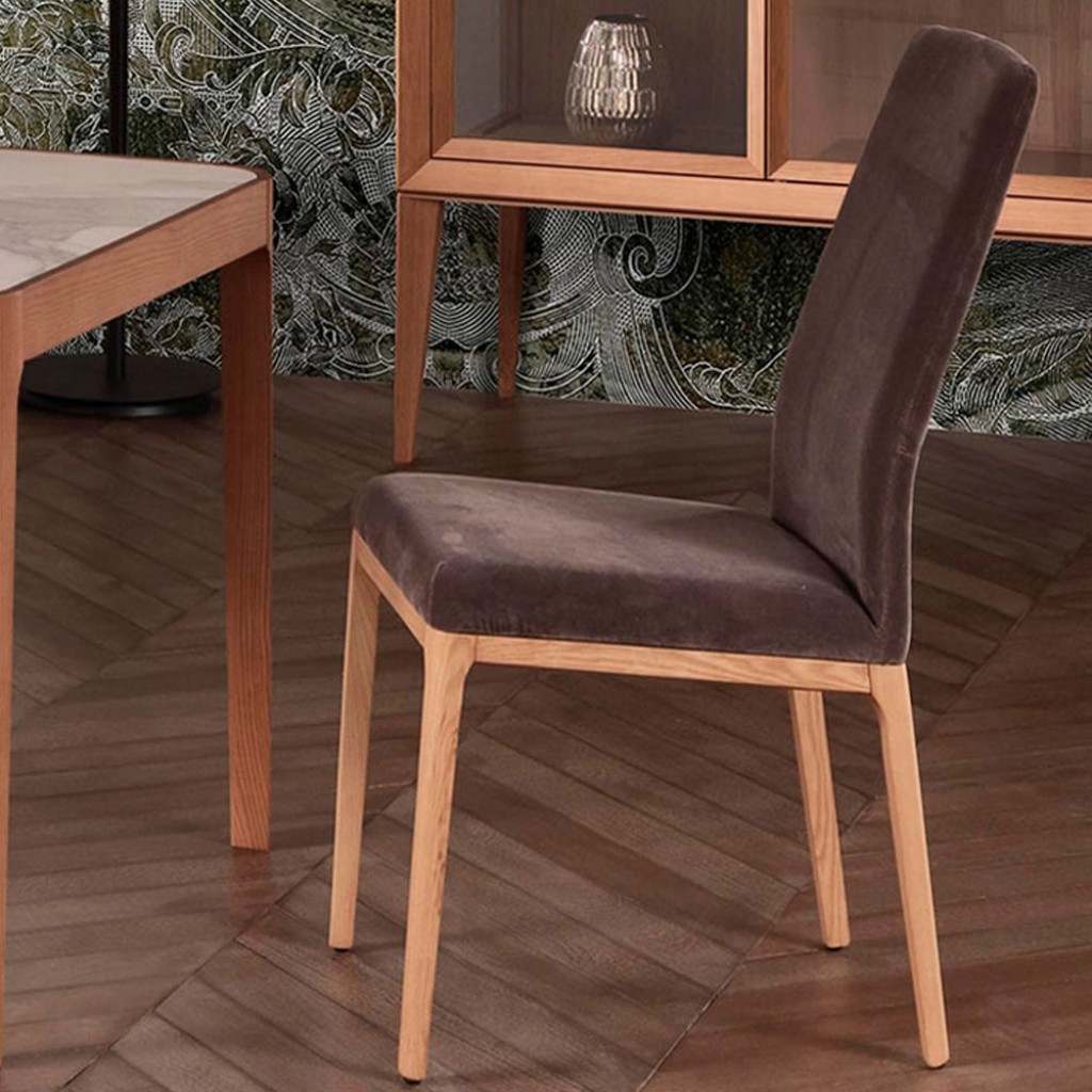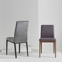Brigitte este un scaun cu cadru din otel inoxidabil, captusit cu diferite tesaturi la sezut si spatar si picioare din lemn.