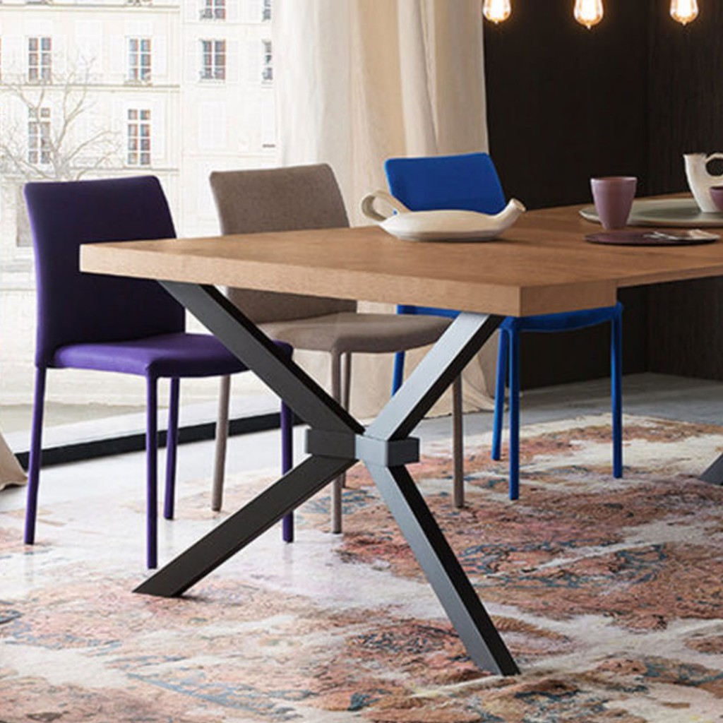 Cross este un model de masa disponibila cu un cadru din lemn de frasin, vopsit in nuante de nuc natural sau nuc alb deschis si cu lemn de stejar tratat termic.Dimensiuni:F - 36 X 90 X H 75F .. -