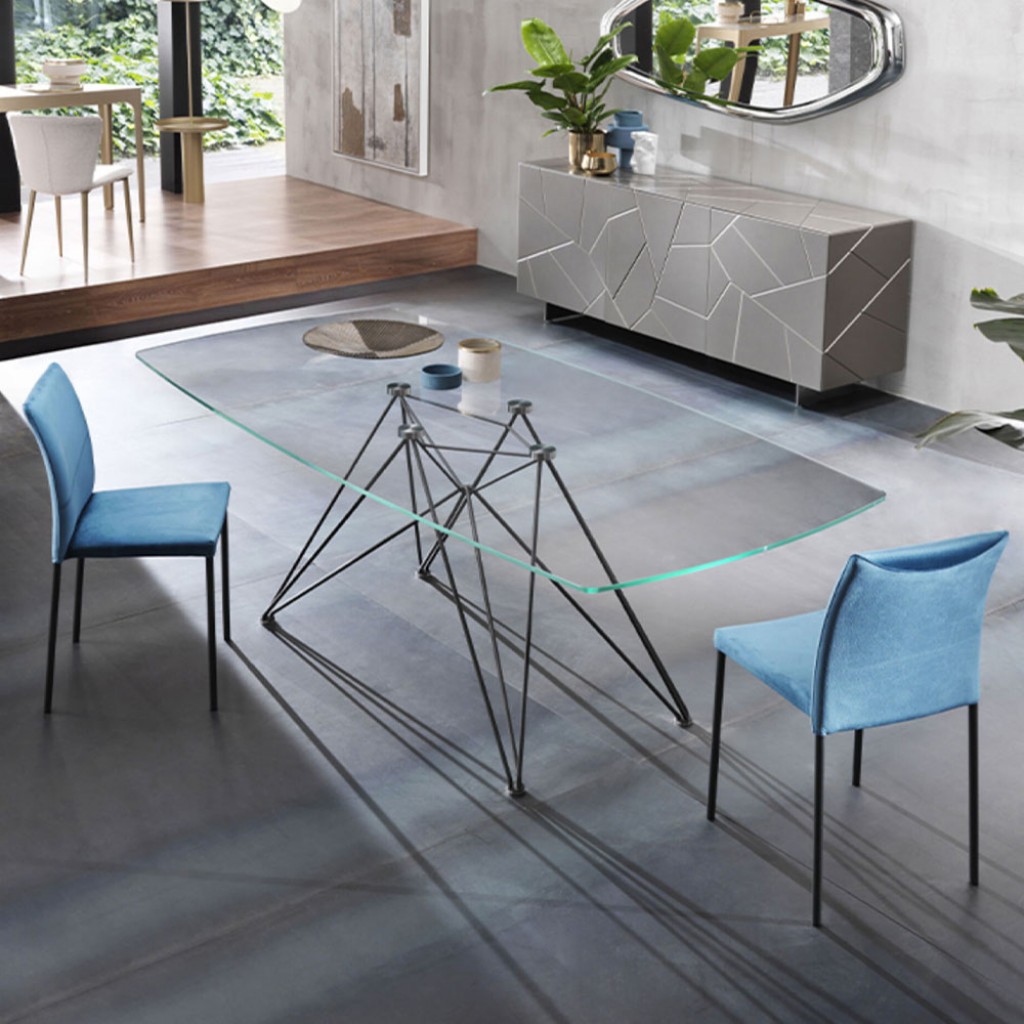 Structura mesei de sticla Glide, cu caracteristici antropomorfe, este din stejar solid, creata manual, pentru un efect cald pentru ochi. Rezultatul este un dinamism lent si elegant, care se .. -