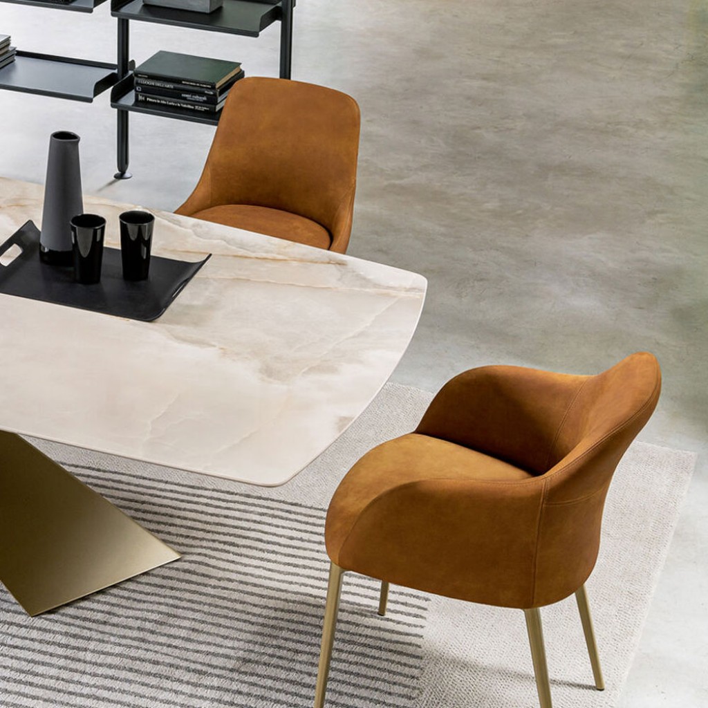 Scaunul Sofia are o rama metalica si picioarele pictate, fiind realizat din poliuretan turnat dintr-o bucata. Scaunul este ergonomic si spatarul reglabil. Sofia este prevazut cu adeziv, poliuretan flexibil si ignifug, iar husa nu este detasabila. Scaunul Sofia are un aspect plin de farmec si prezinta un aer sofisticat.