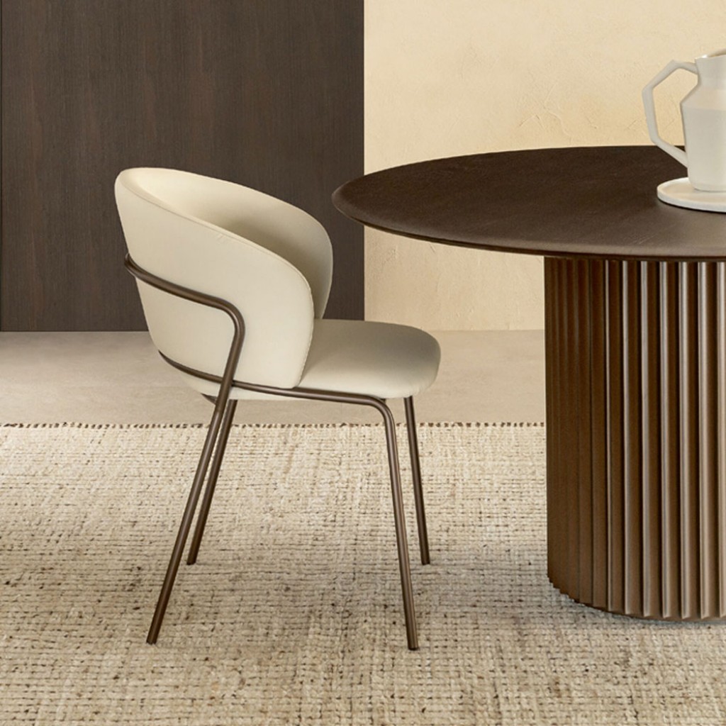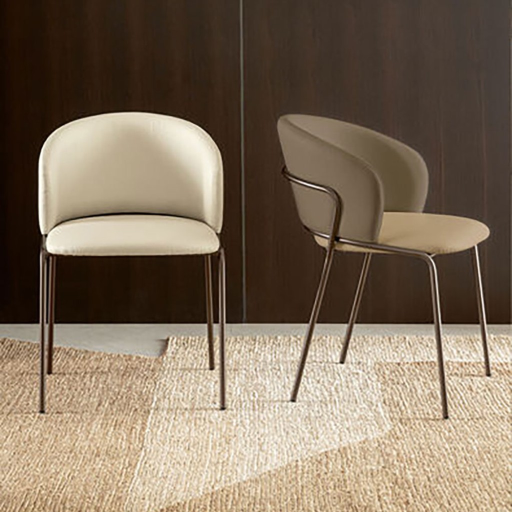 Scaun cu cadru din otel, sezut cu benzi elastice si spatar tapitat. Acoperit si finisat de cusaturi cu ac dublu. Design by Riflessi LabDimensiuniL 45 X H 92 X P 50.. -
