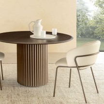 Maya este un scaun functional si elegant, disponibil atat cu structura din lemn cat si cu structura metalica, cu sau fara cotiere. Pe partea tapitata vine cu detalii decorative extrem de ele.. -