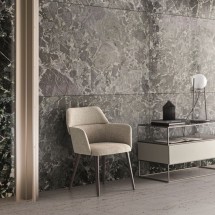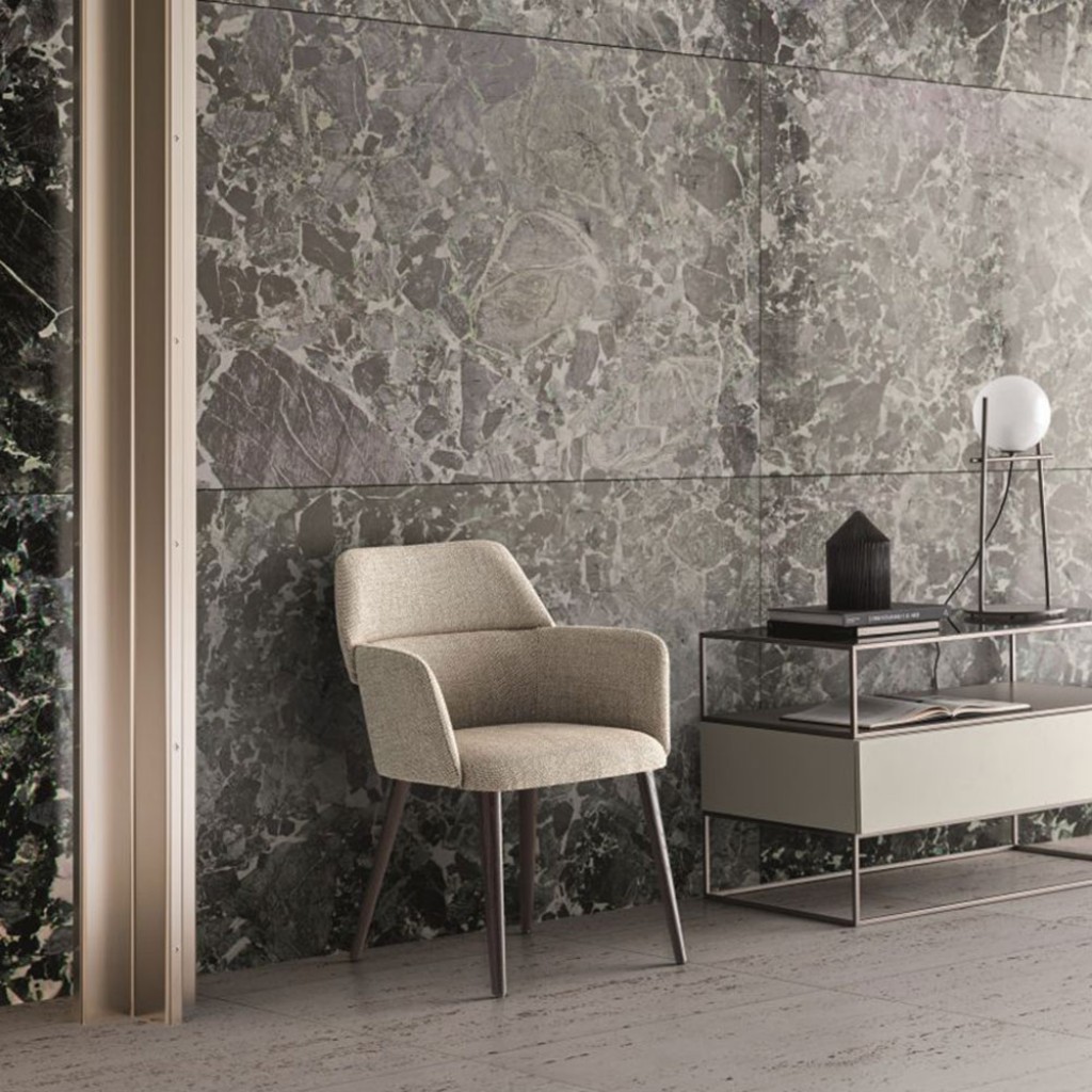 Archie reinterpreteaza fotoliul tapitat de sufragerie printr-un joc de volume suprapuse, un element de mobilier elegant si spatios.