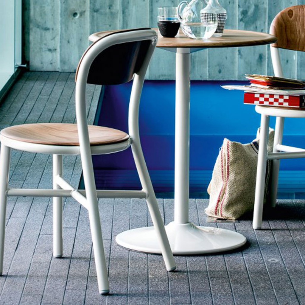 Designer Ronan & Erwan BouroullecOfficina Bench are un cadru din fier forjat, galvanizat sau tratat cataforetic si vopsit in pulbere de poliester. Scaunul este din placaj din lemn de fag.. -