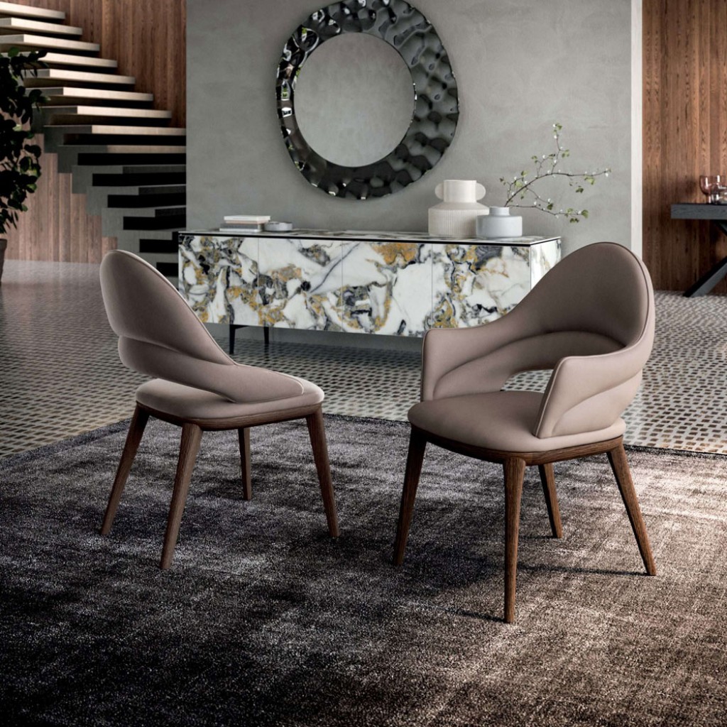 Lois este un scaun modern care poarta eleganta atemporala a materialului matlasat: in acest model, prelucrarea rafinata a pielii ecologice pe partea frontala a spatarului reprezinta semnatur..