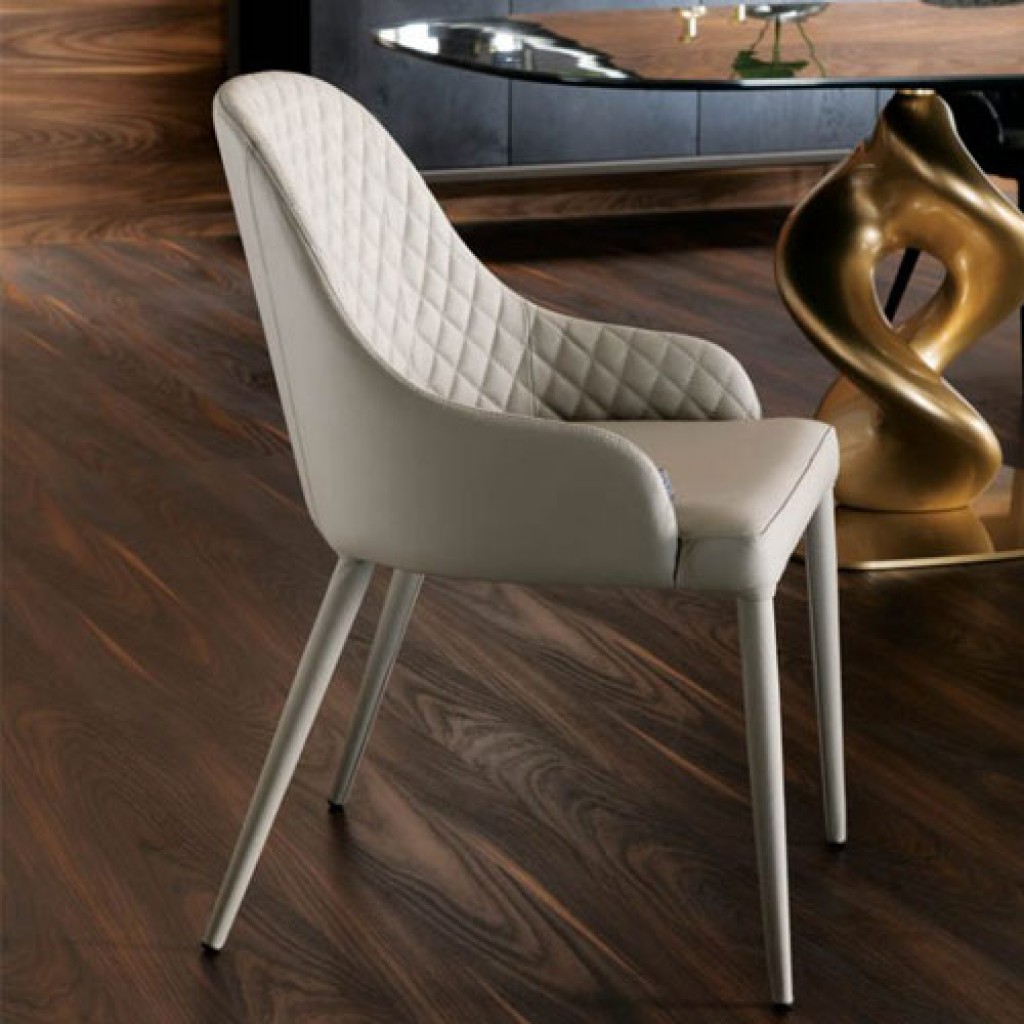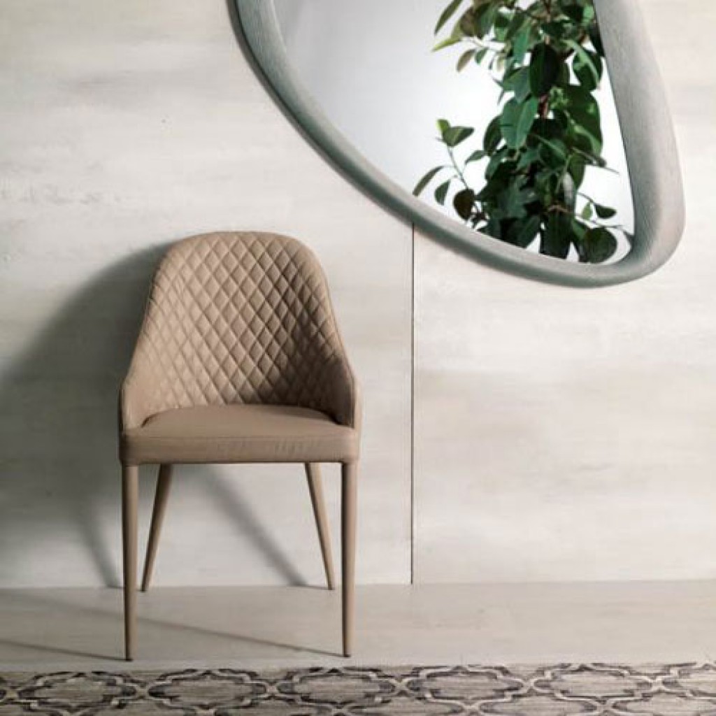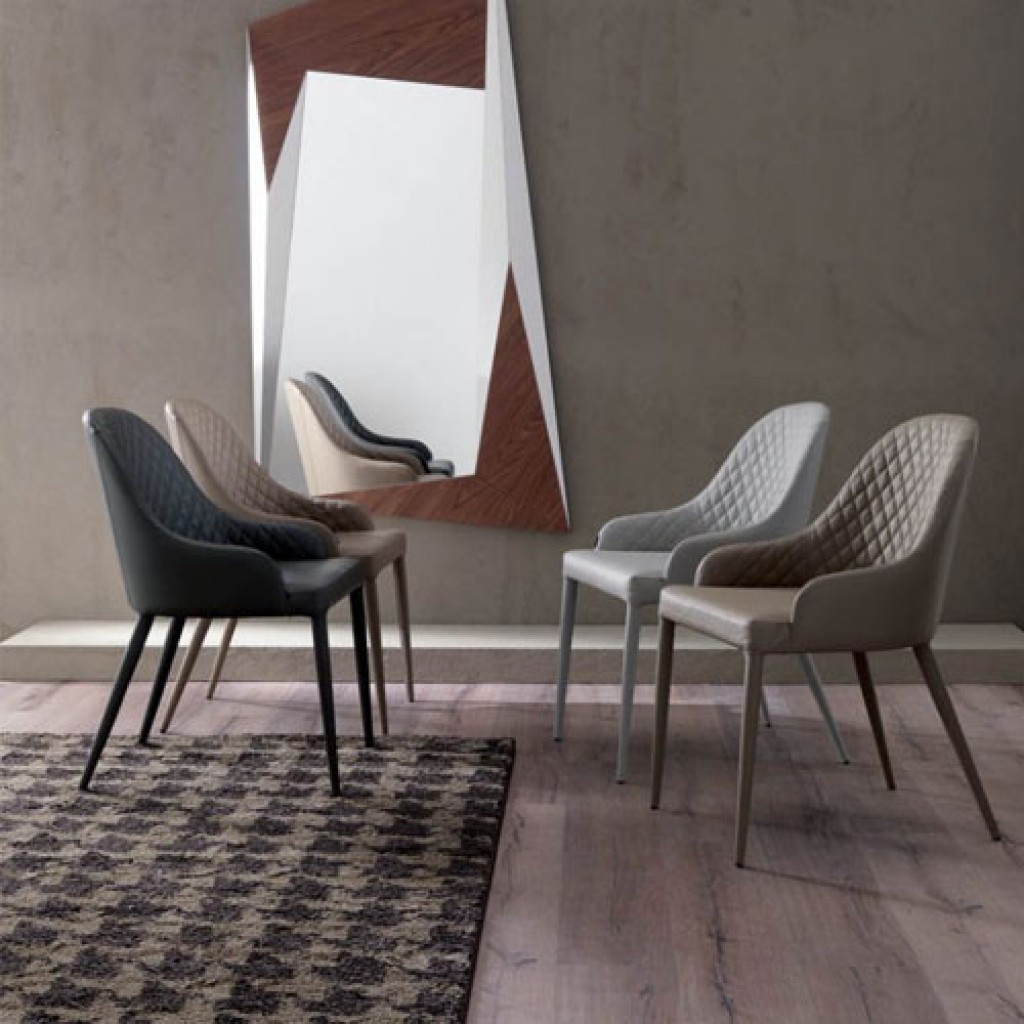 Cod S512 – Design – Marco PozzoliScaun cu baza metalica si sezut captusit, acoperit in piele sau catifea, cusaturi ce evidentiaza orice living modern... -