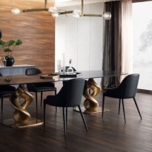 Cod: T244 - Designer: Gabriele Cappelletti - Studio OzetaGeometrii rafinate care se combina cu un motiv estetic placut. Materiale pretioase sustinute de o structura ce joaca tema echilibrulu.. -
