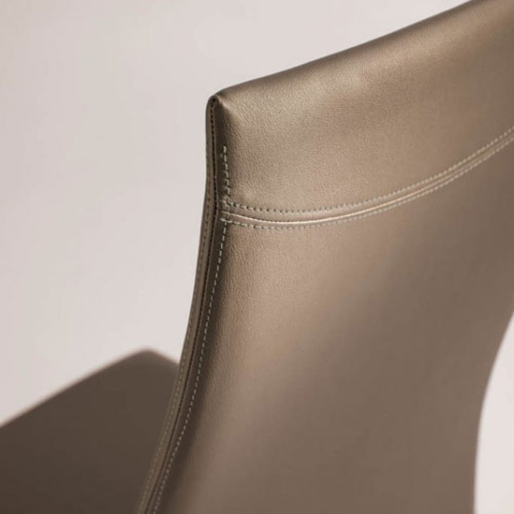 Cod S511 – Design – Marco PozzoliScaun cu baza metalica si sezut captusit, acoperit in piele sau catifea, cusaturi ce evidentiaza orice living modern... -
