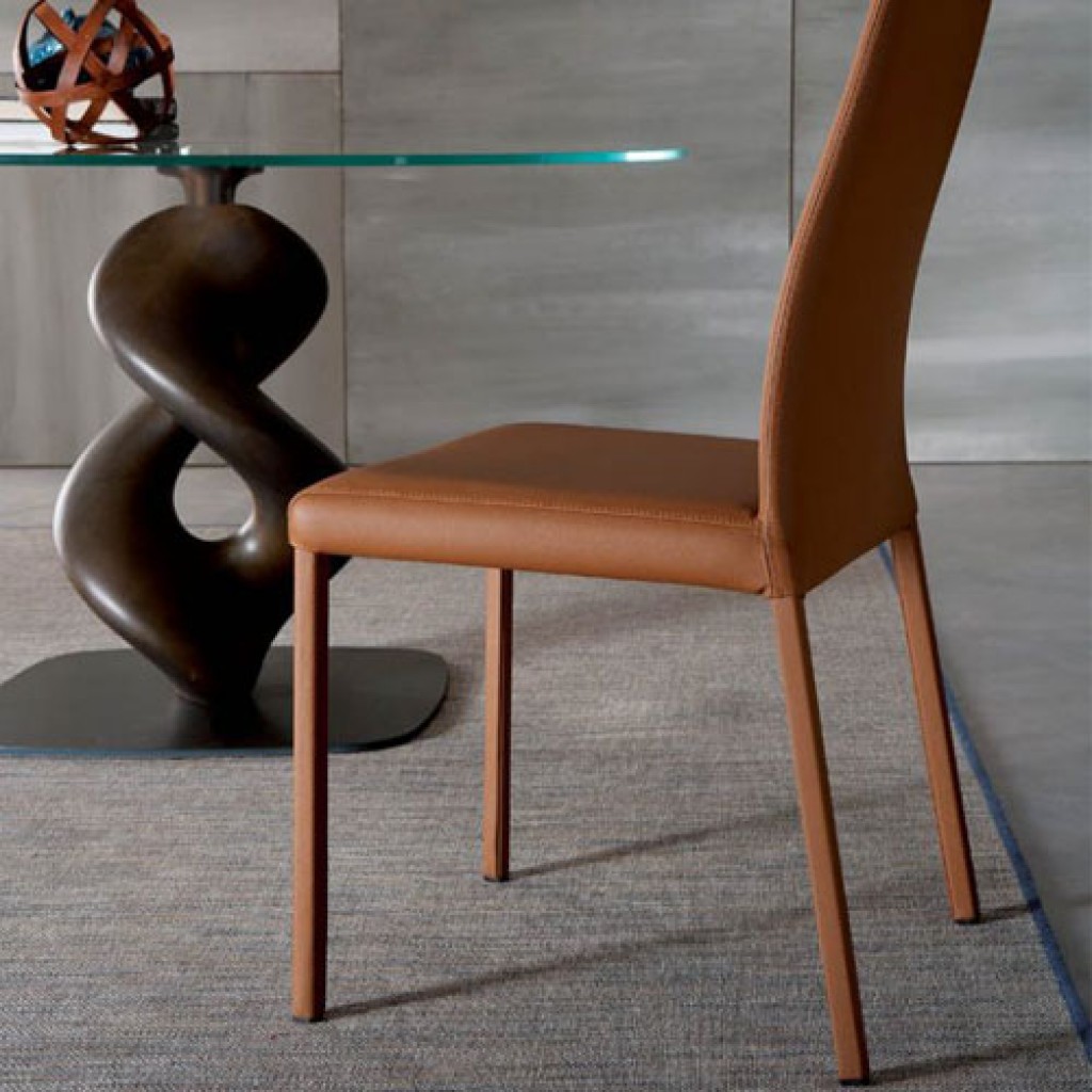 Sveva este un scaun de mici dimensiuni, cu cadru din otel si perna captusita la sezut si spatar. Husele nu sunt detasabile. Stilul inconfundabil al scaunului Sveva, original si perfect integ.. -