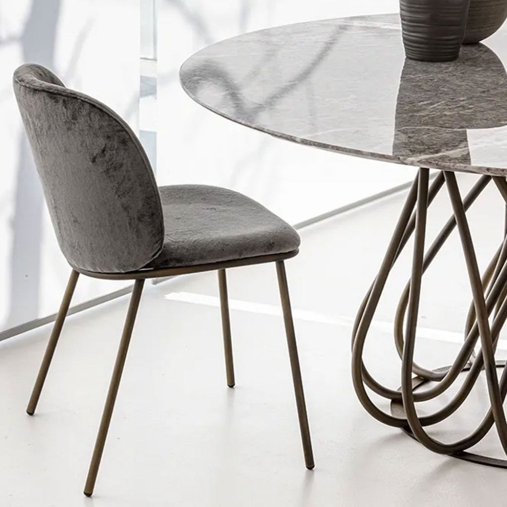 Cod: S321- Design: Studio OzetaScaun pentru dining cu structura metalica, acoperit cu piele moale, piele eco-soft sau catifea...