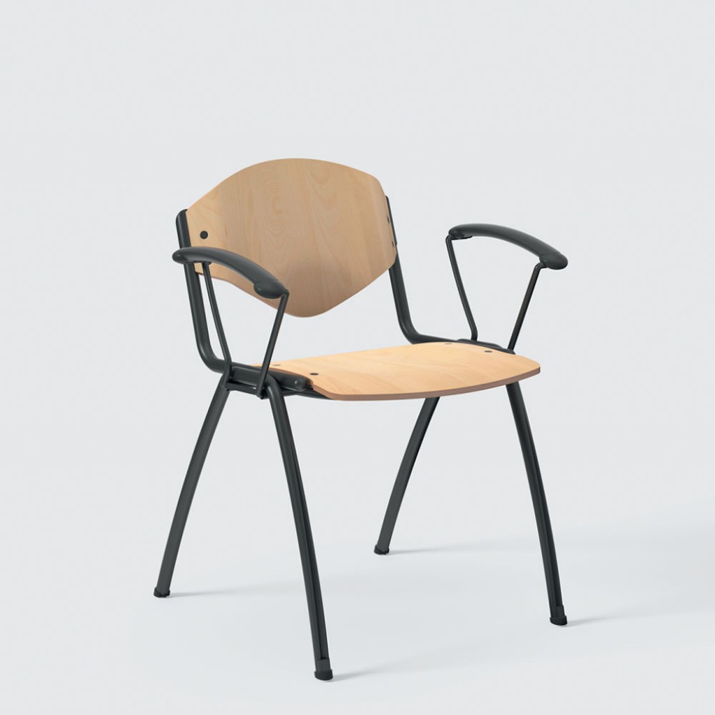 Versiunea cu 4 picioare, cu scaunul si spatarul din lemn de fag natural, ofera produsului o eleganta clasica formala. Natura independenta a fiecarui scaun asigura versatilitate maxima in orice context.