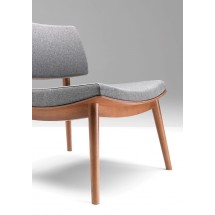 Scaun lounge capitonat cu 4 picioare si cadru din lemn.