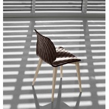 Scaun din polipropilena cu 4 picioare si cadru din lemn.