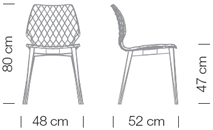 Scaun cu cadru din otel cu 4 picioare. Sezutul si spatarul sunt din sarma PVC cu finisaj mat.Designer R&DDimensiuni.. -