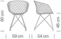 Scaun cu cadru din otel cu 4 picioare. Sezutul si spatarul sunt din sarma PVC cu finisaj mat.Designer R&DDimensiuni.. -