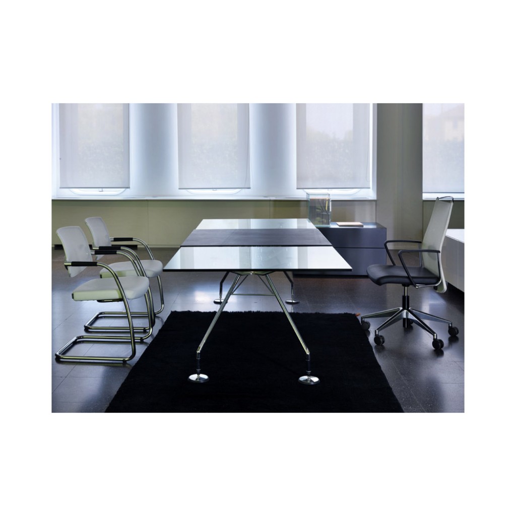 • Structura este din otel tubular cromat si lustruit, placi de lemn stratificat, acoperite in polipropilena sau otel cadru pentru varianta mesh.