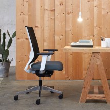 Design: Giovanni BaccoliniScaunul operativ Zero 7 beneficiaza de un spatar complet captusit. Este disponibil in mai multe variante: cu sau fara tetiera, cotiere fixe sau ajustabile, picioare..