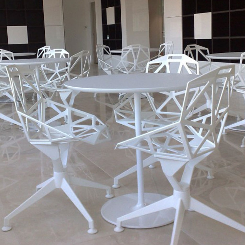 Materiale: cadru din aluminiu turnat sub presiune, lustruit sau vopsit cu pulbere de poliester (versiunea de exterior). Blaturi din beton vopsit cu finisaj lucios.Designer - Ronan & Erwa.. -