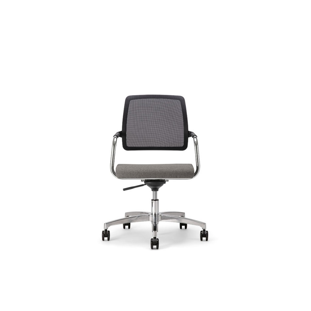 Intalnirea dintre linii usoare si forme fluide. Scaun operativ cu sezut tapitat si spatar din mesh, cu structura alba sau neagra si componente asortate.Dimensiuni.. -