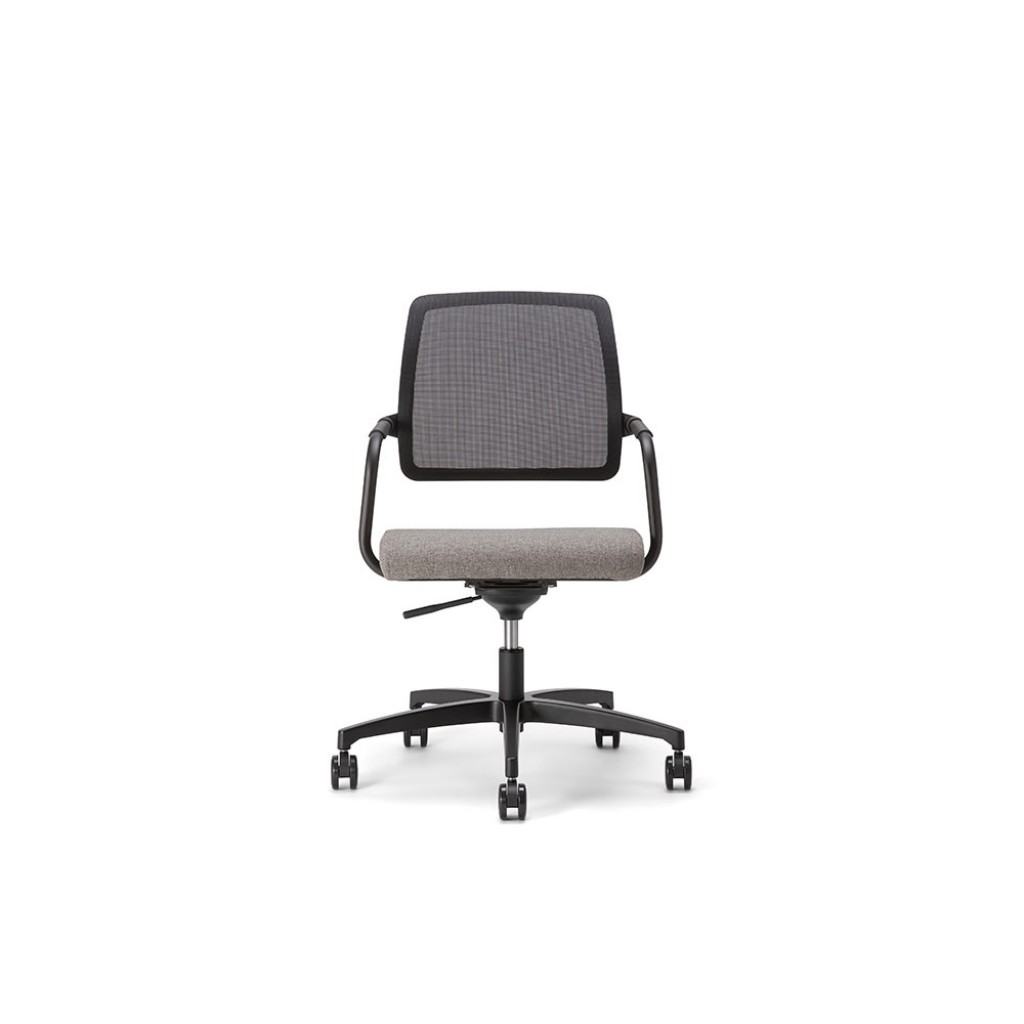 Intalnirea dintre linii usoare si forme fluide. Un scaun operativ structurat si distinct, cu sezut tapitat si spatar din mesh, cu structura disponibila in alb sau negru, completata de brate,.. -
