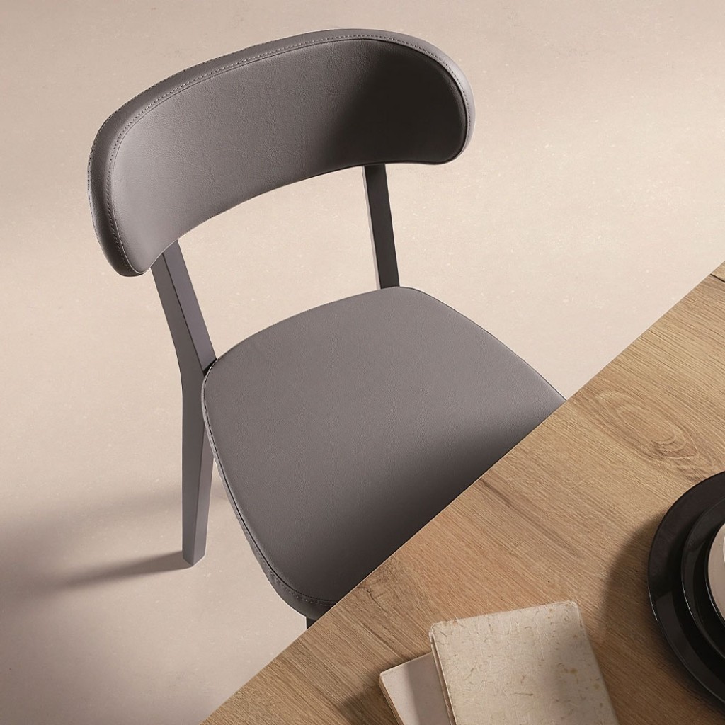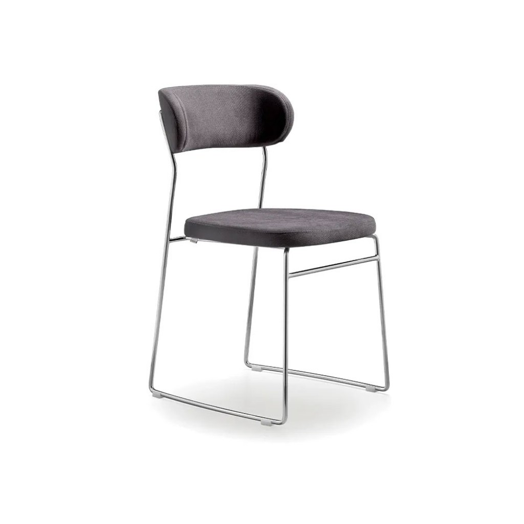 Un scaun elegant si versatil, cu spatar si sezut tapitate intr-o gama larga de finisaje, conceput pentru a oferi confort si stil in fiecare detaliu. Baza pivotanta, realizata din metal vopsi..