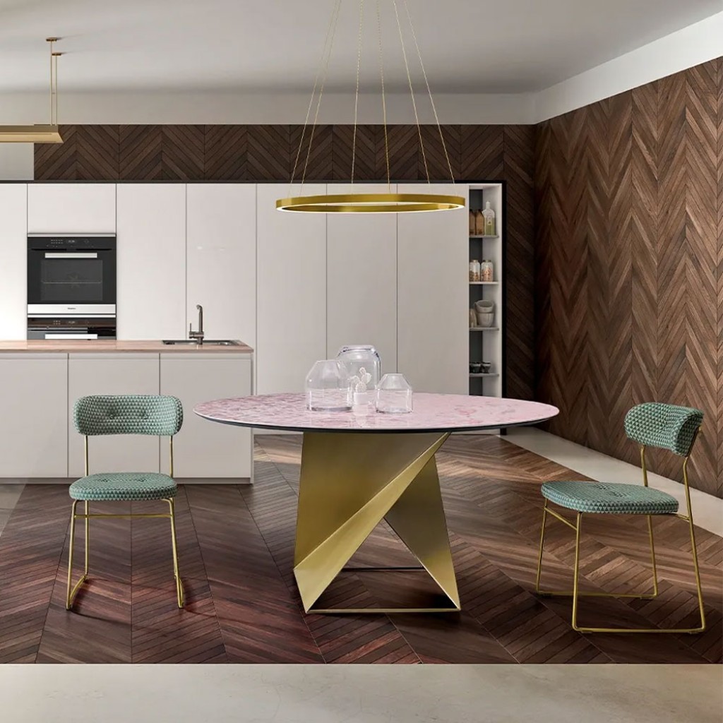Diferitele sectiuni ale unui trunchi de con creeaza aceasta forma fascinanta, inspirata din natura florilor. Blatul rotund, cu un diametru de 180 cm, este realizat din diverse materiale, cel.. -