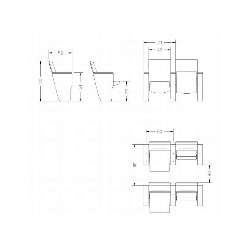 Confort si functionalitateUn scaun pentru sali de cinema, cu linii esentiale si cotiere cu forma unica, ce amintesc de litera "Y", ce are proprietatea speciala de a fi robust. Eleganta si co.. -