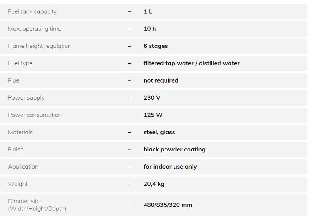 Steamy este un semineu modern, de sine statator, cu vapori de apa, care utilizeaza tehnologia Optimyst pentru a crea un efect de flacara realist. Sigur pentru copii si animale de companie, nu necesita instalarea cosului de fum. Echipat cu o telecomanda, permite o operare usoara.