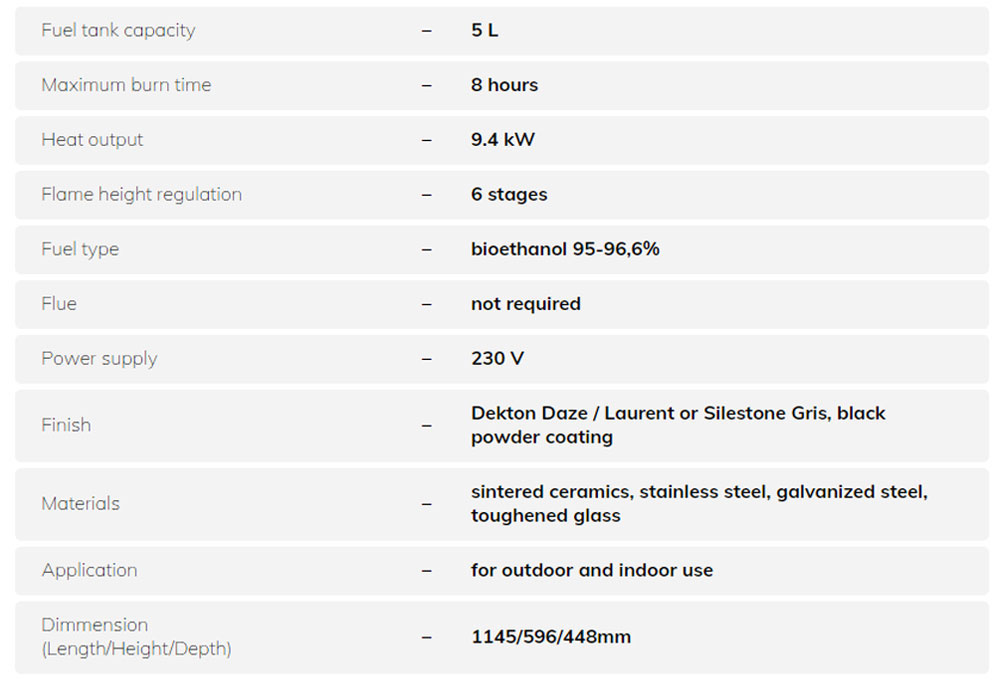 Cabo este un semineu automat cu bioetanol cu tehnologie BEV care va permite sa va bucurati de atmosfera confortabila in interior si in aer liber. Combina cele mai inalte standarde de siguranta cu un design exceptional si materiale de ultima generatie pentru o experienta unica. Acest semineu de sine statator poate fi aplicat in spatii interioare, precum si in gradini si terase.
